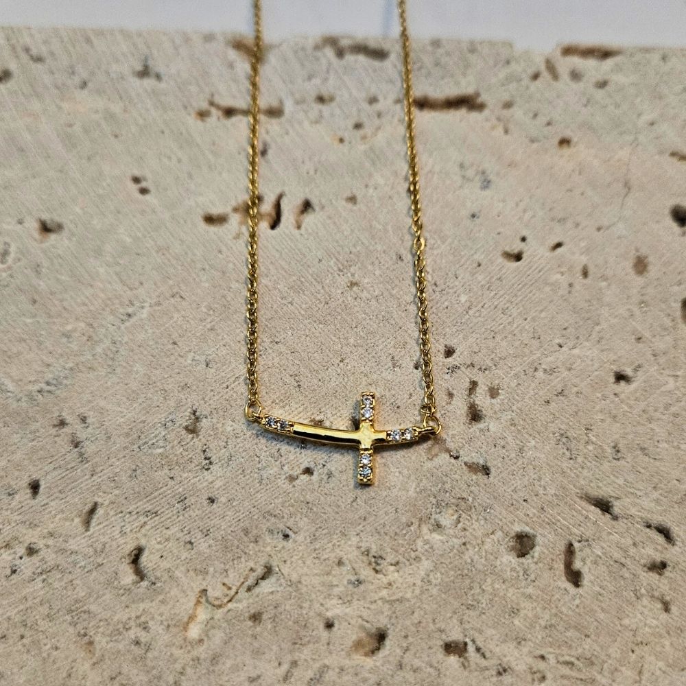 Κολιέ Σταυρός Πλαγιαστός με Στρας – Χρυσό