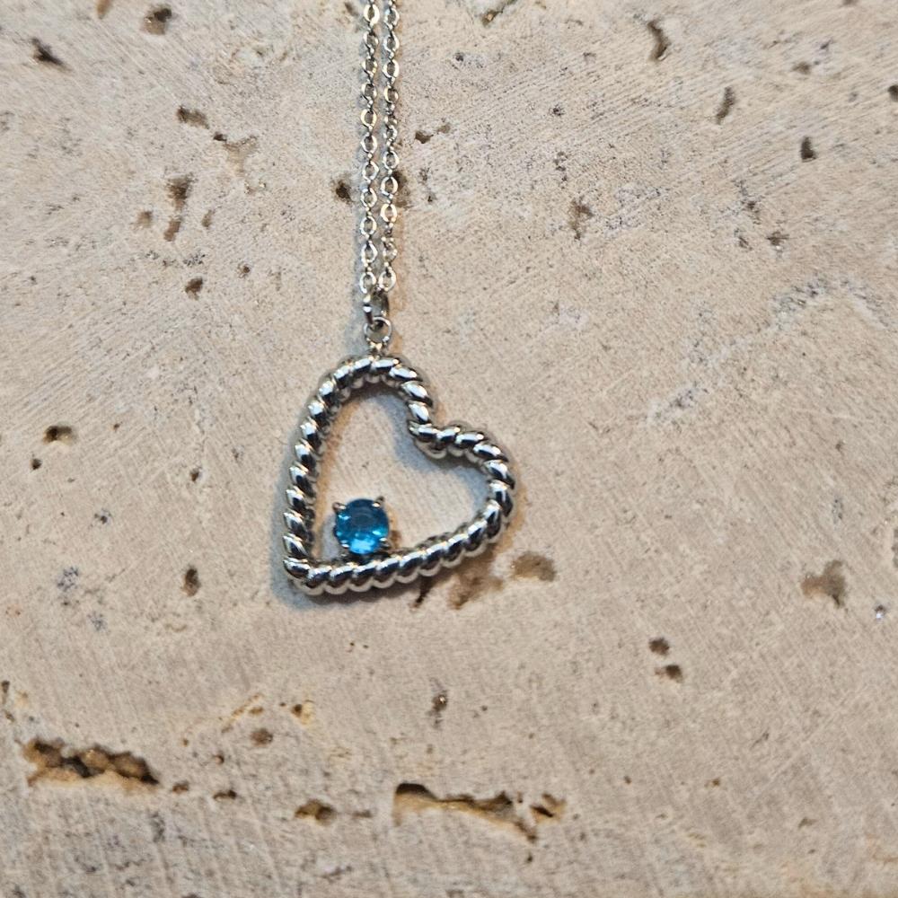 Κολιέ Twisted Heart με Μπλε Ζιργκόν – Ασημί