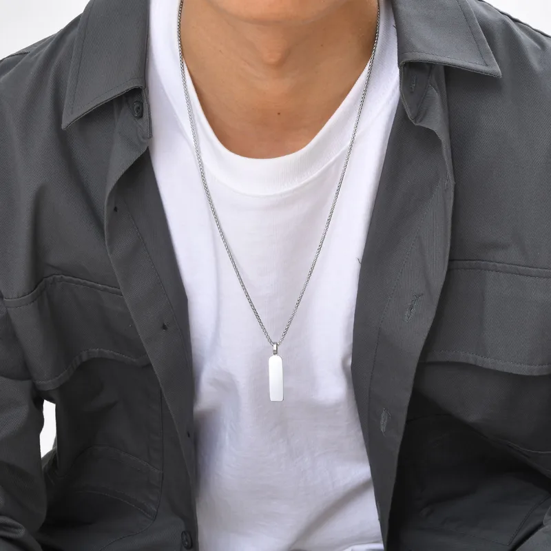 Κολιέ Unisex Με Δυνατότητα Χάραξης Πλακέτα – Ασημί
