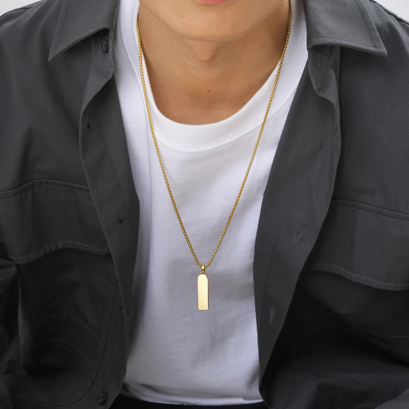 Κολιέ Unisex Με Δυνατότητα Χάραξης Πλακέτα – Χρυσό