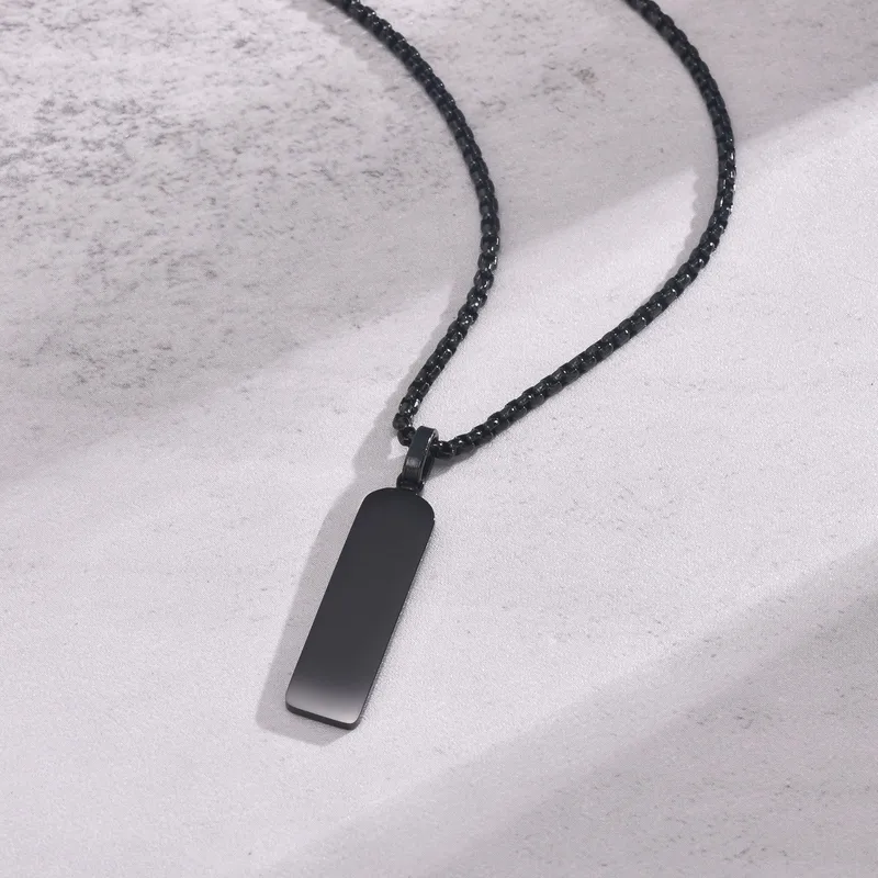 Κολιέ Unisex Με Δυνατότητα Χάραξης Πλακέτα – Μαύρο