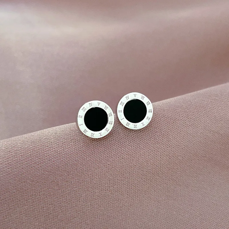Σκουλαρίκια Κουμπωτά Circel – Μαύρο | Ασημί