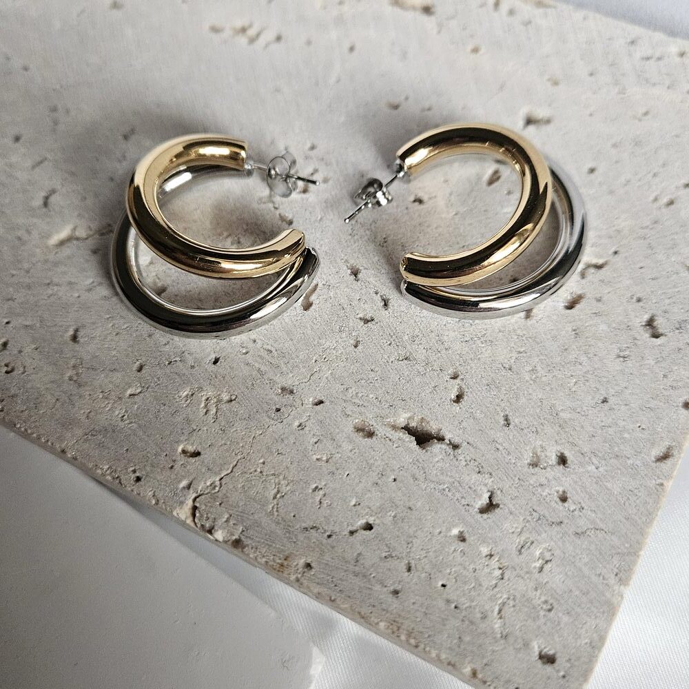 Σκουλαρίκια Κουμπωτά Half Circle – Δίχρωμο