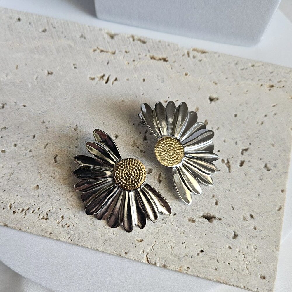 Σκουλαρίκια Κουμπωτά Half Flowers- Δίχρωμα