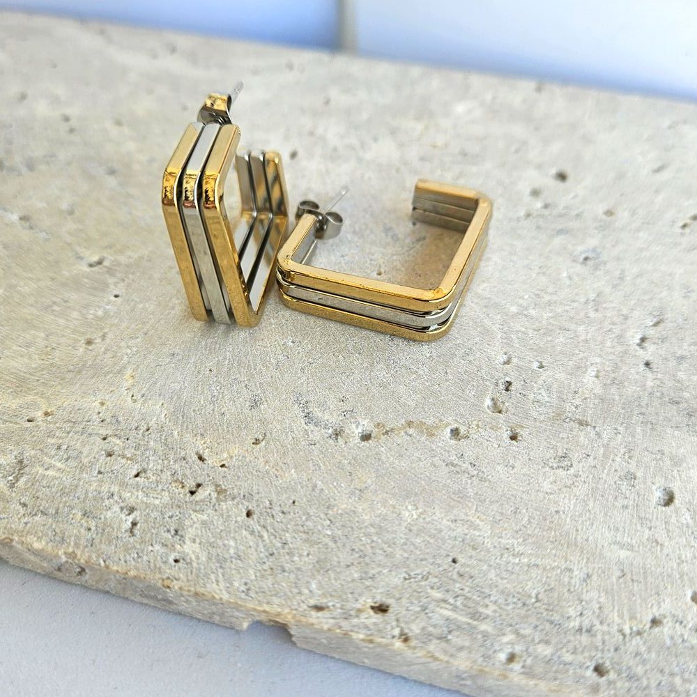 Σκουλαρίκια Κουμπωτά Half Square – Δίχρωμα