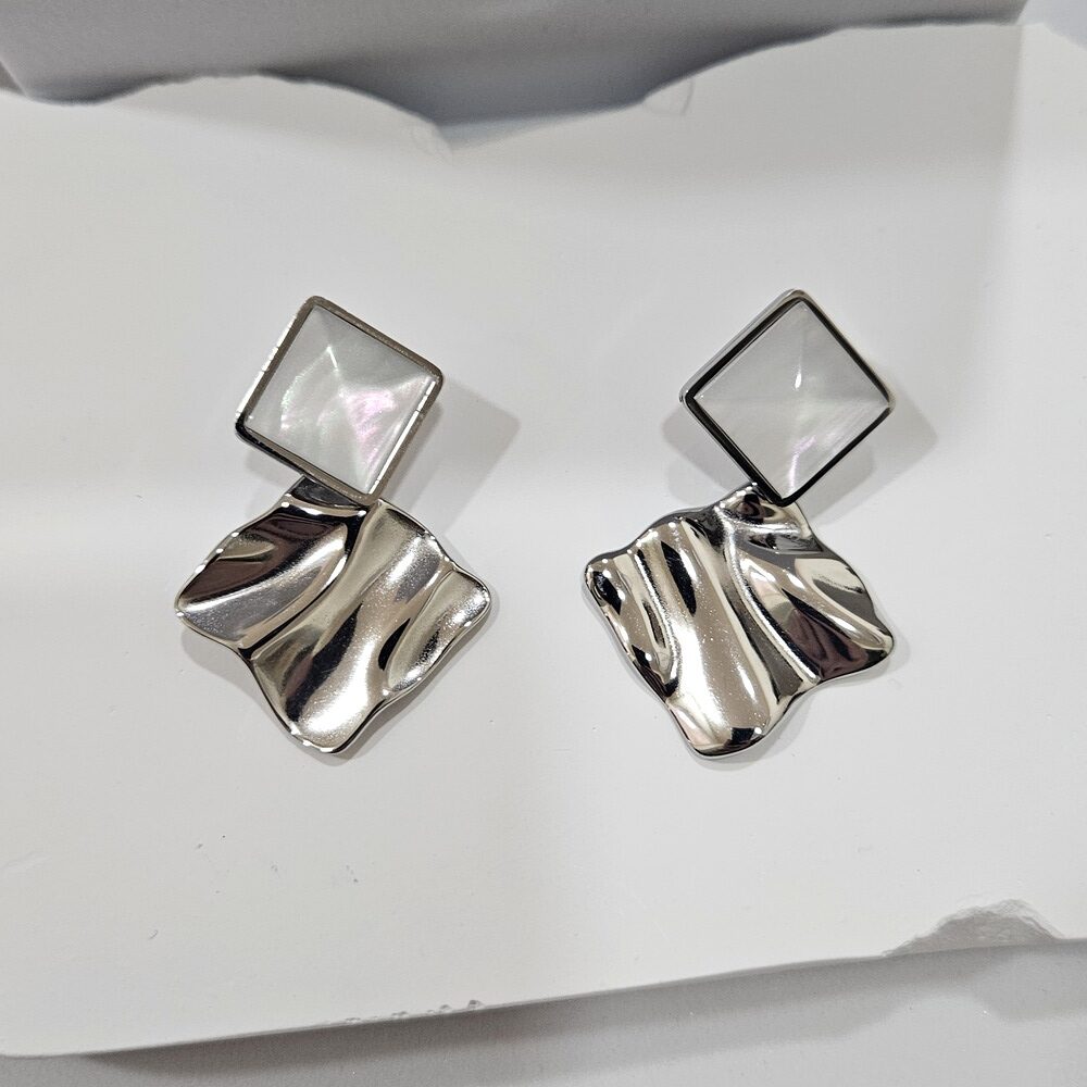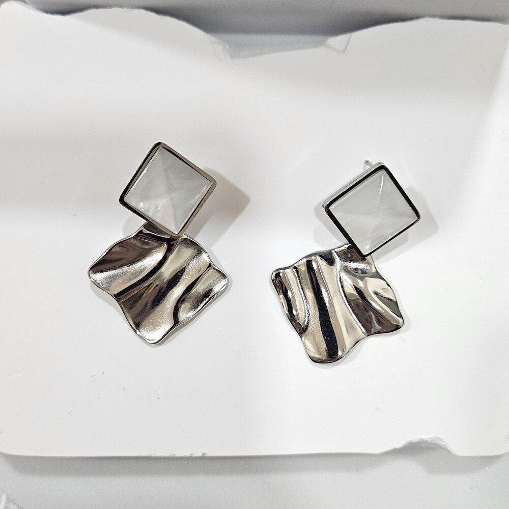 Σκουλαρίκια Κουμπωτά με Πλακέτα και Πέτρα Λευκή Ρόμβος