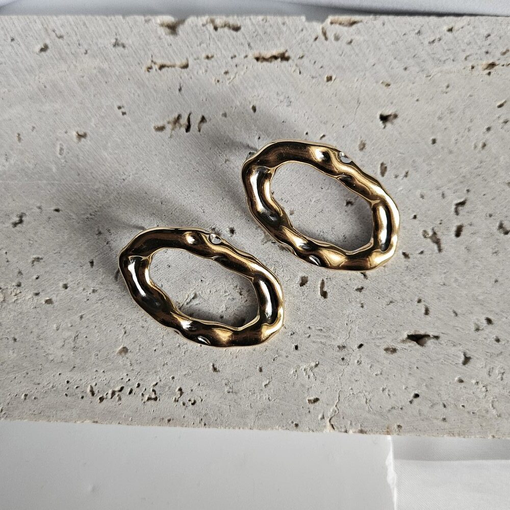 Σκουλαρίκια Κουμπωτά Οβάλ Χρυσά με Ασημί Λεπτομέρειες