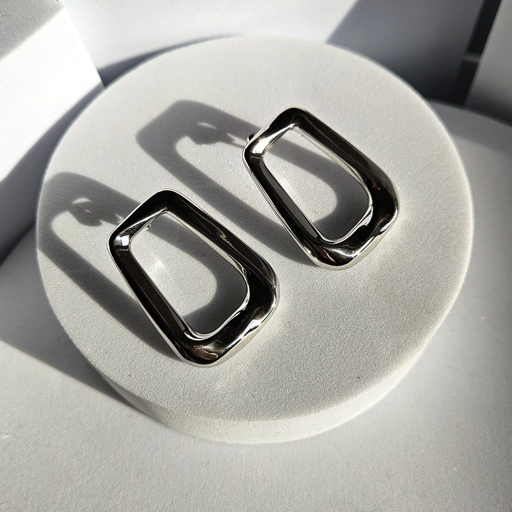 Σκουλαρίκια Κουμπωτά Παραλληλόγραμμα – Ασημί