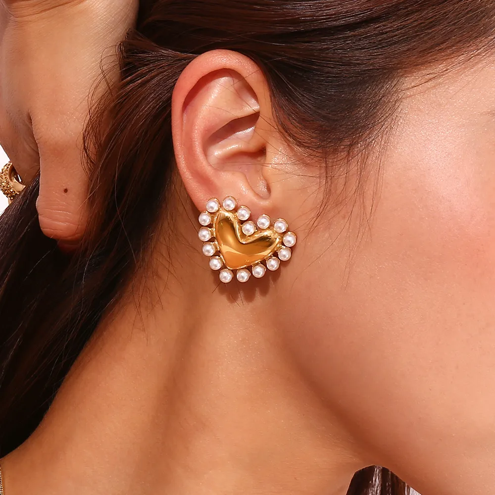 Σκουλαρίκια Κουμπωτά Pearly Heart – Χρυσό