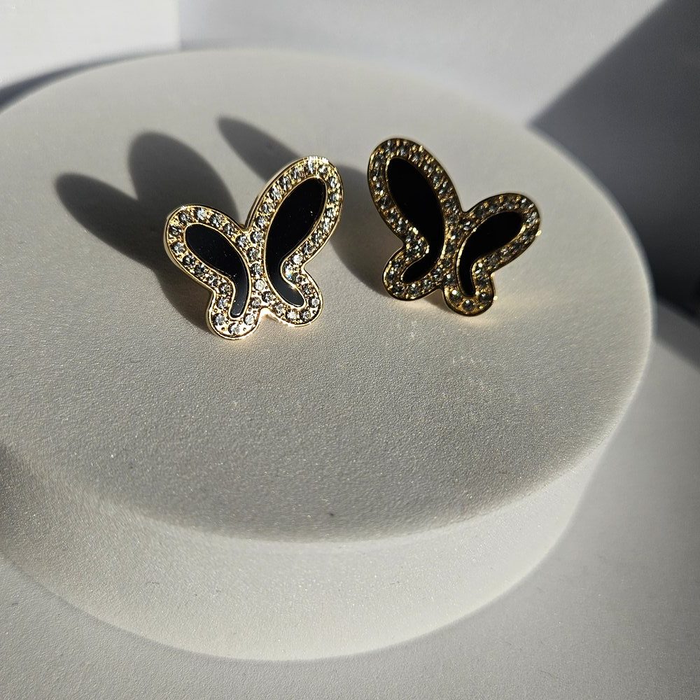 Σκουλαρίκια Κουμπωτά Πεταλούδες με Στρας – Χρυσό