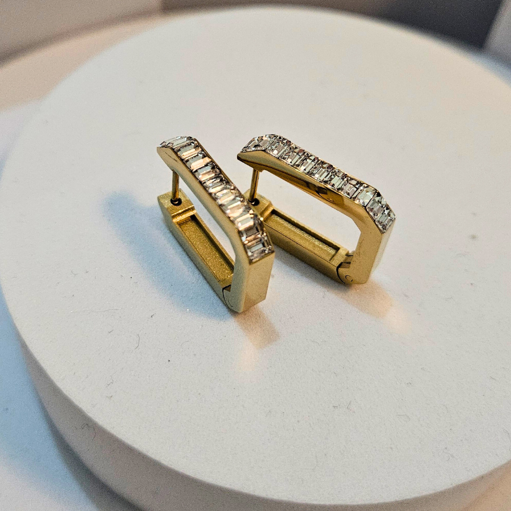 Σκουλαρίκια Κρικάκια Polygon με Στρας – Χρυσό