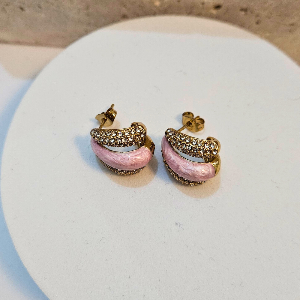 Σκουλαρίκια Κουμπωτά Princess με Στρας και Ροζ Πέτρες – Χρυσό