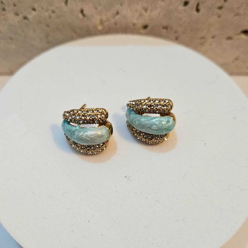 Σκουλαρίκια Κουμπωτά Princess με Στρας και Σιέλ Πέτρες – Χρυσό