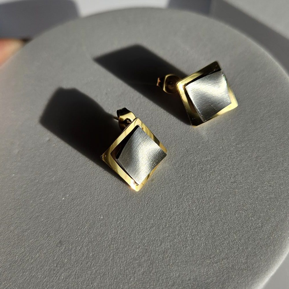 Σκουλαρίκια Κουμπωτά Qubes – Δίχρωμο