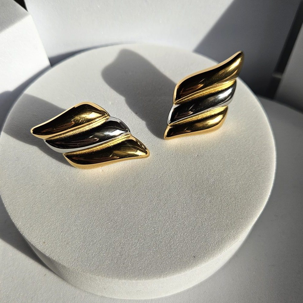Σκουλαρίκια Κουμπωτά Wings – Δίχρωμο
