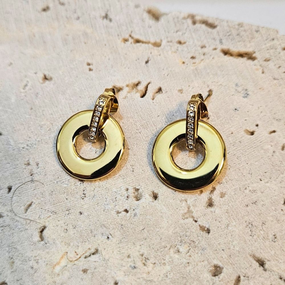 Σκουλαρίκια Κουμπωτοί Δίσκοι με Στρας – Χρυσό