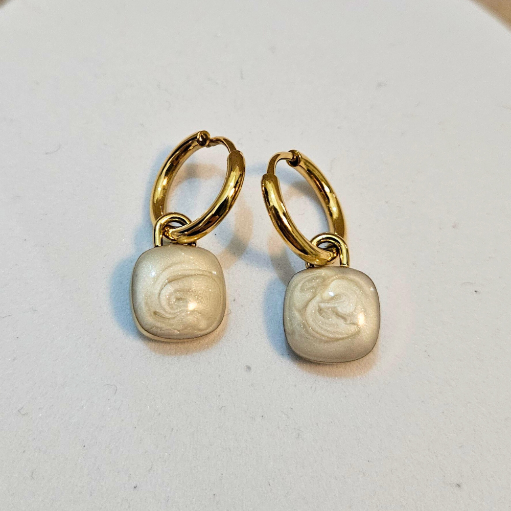 Σκουλαρίκια Κρεμαστά Mini Squares Marble – Χρυσό