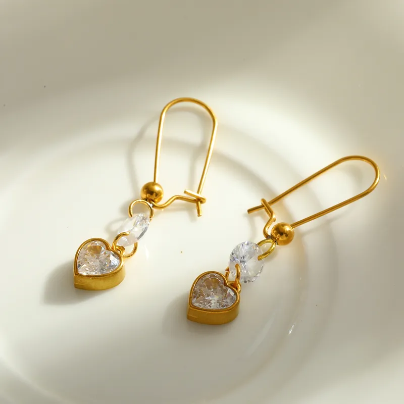 Σκουλαρίκια Κρεμαστά Πέτρινες Καρδούλες – Χρυσό