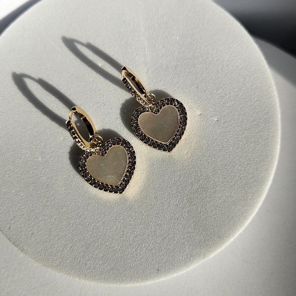 Σκουλαρίκια Κρικάκια με Κρεμαστές Καρδιές και Στρας – Χρυσό