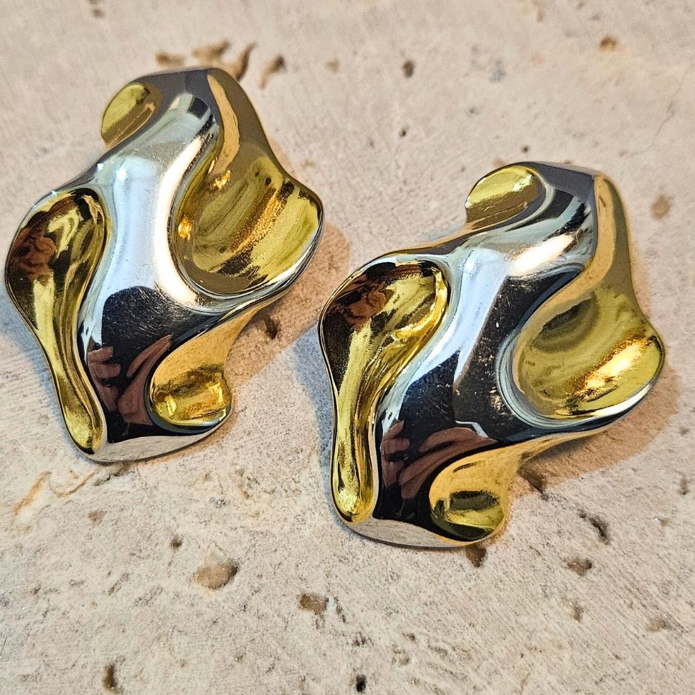 Σκουλαρίκια Liquid Wave Κουμπωτά – Δίχρωμο