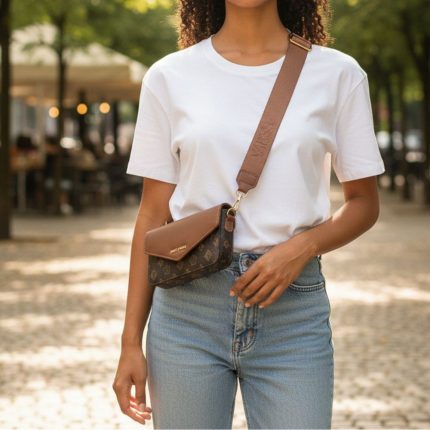 Τσάντα Πορτοφόλι Χιαστί με Χοντρό Λουρί – Καφέ Ανοιχτό