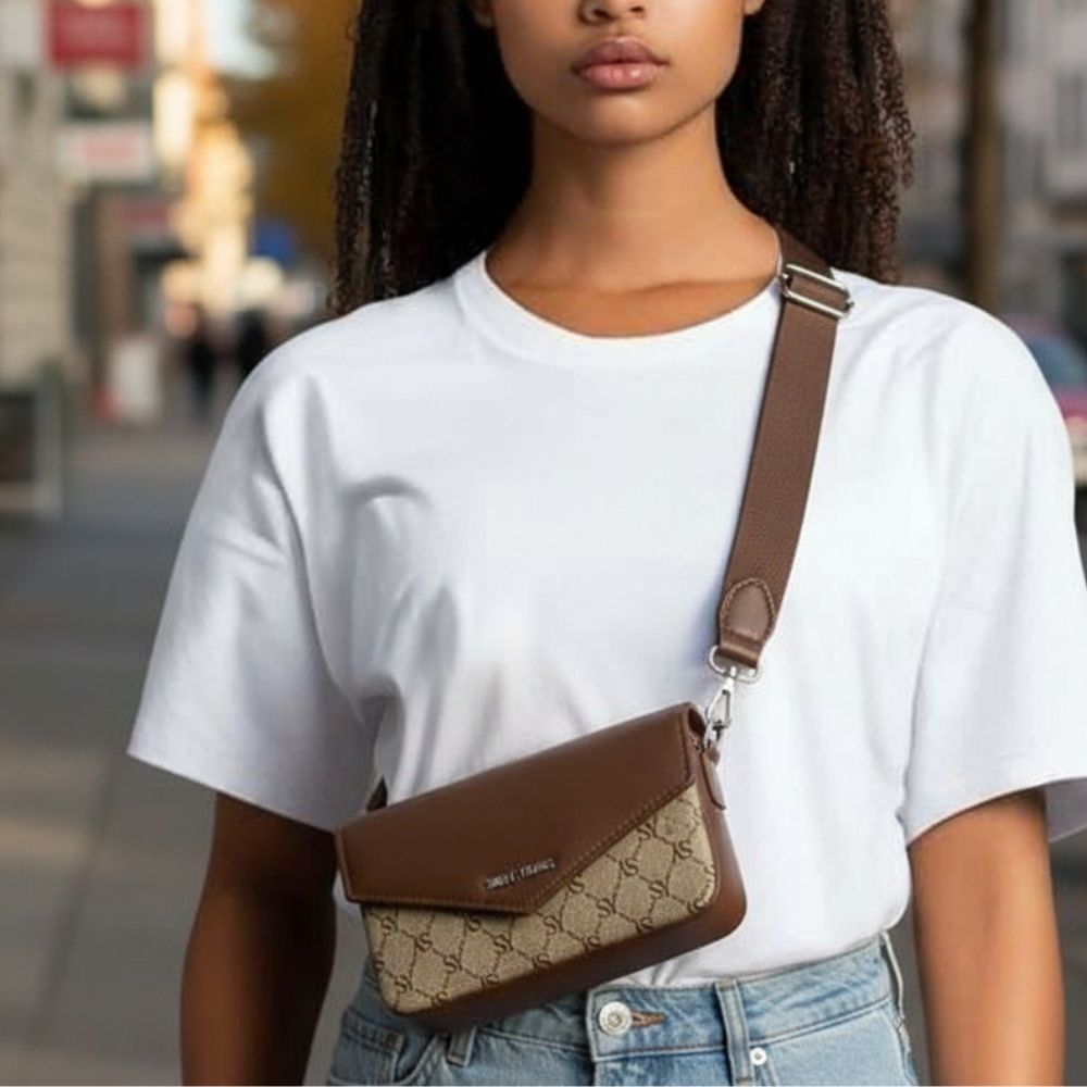 Τσάντα Πορτοφόλι Χιαστί με Χοντρό Λουρί - Total Brown