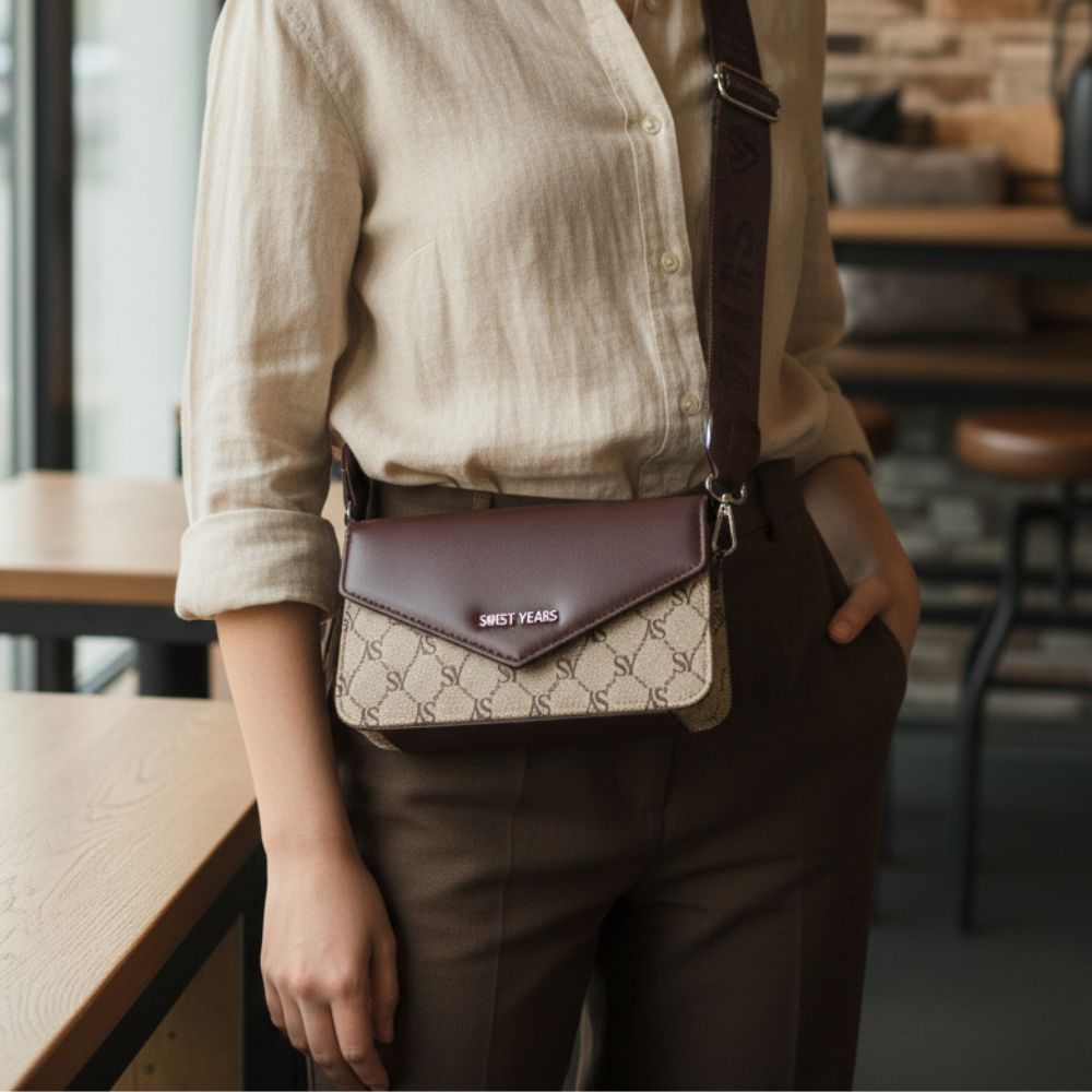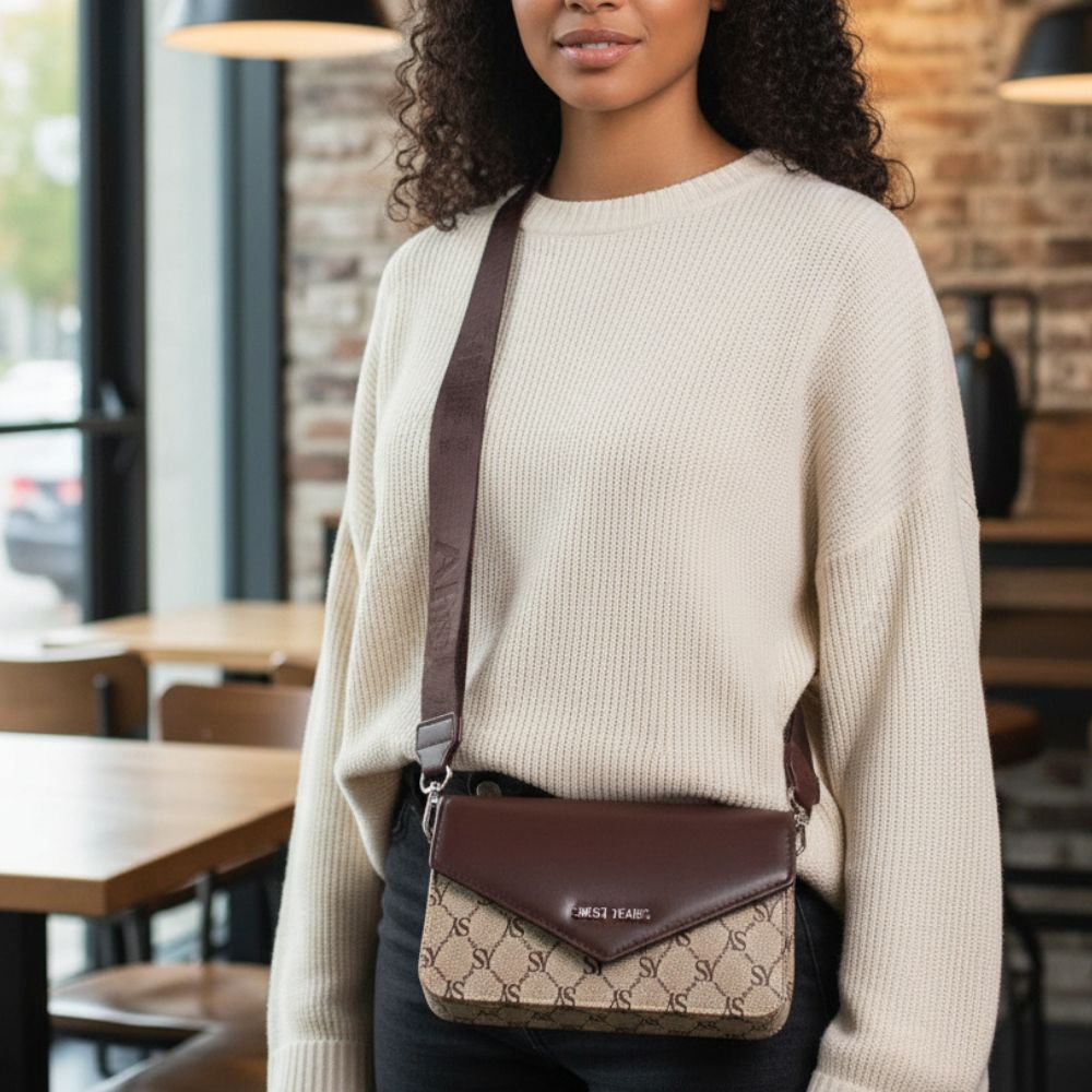Τσάντα Πορτοφόλι Χιαστί με Χοντρό Λουρί – Καφέ