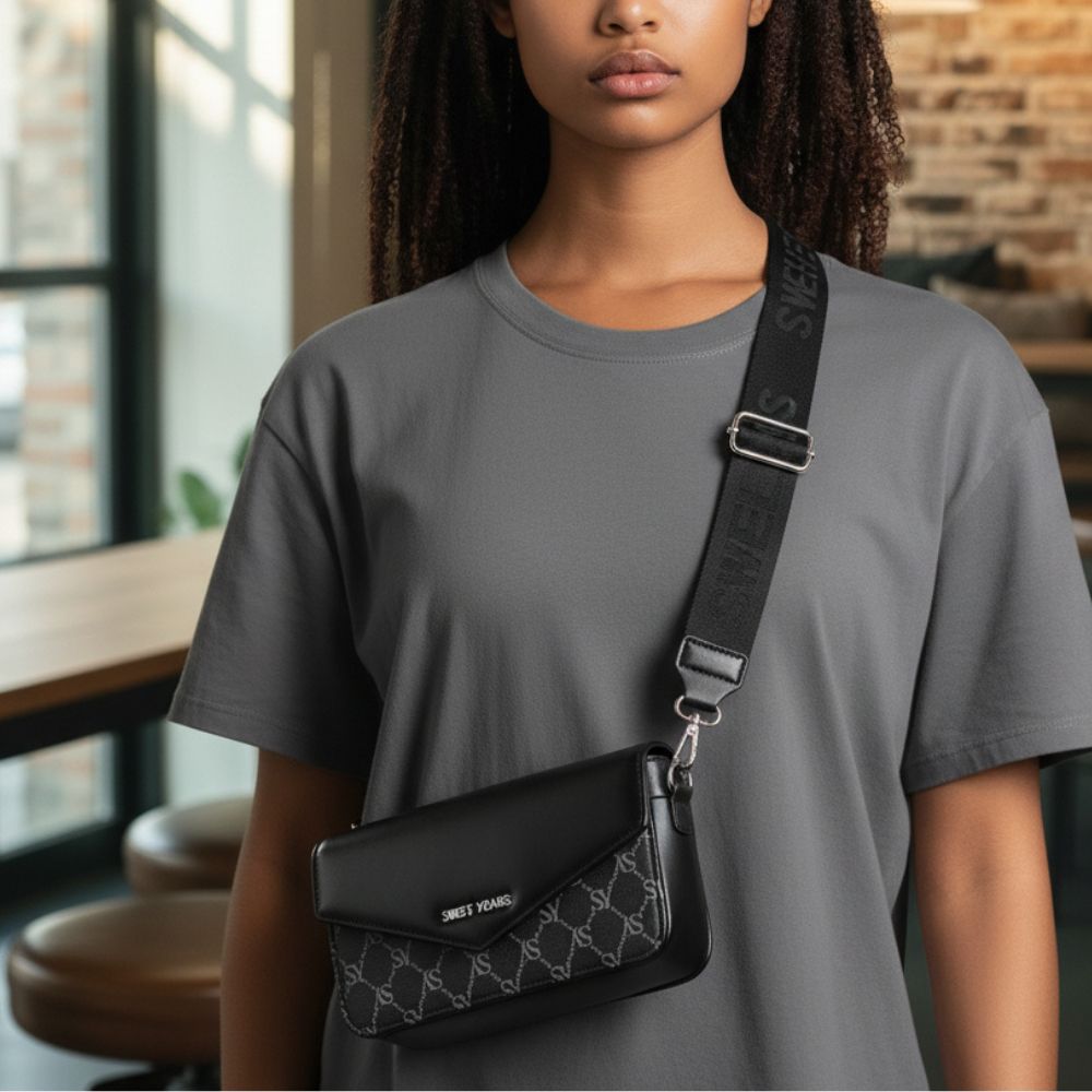 Τσάντα Πορτοφόλι Χιαστί με Χοντρό Λουρί – Total Black
