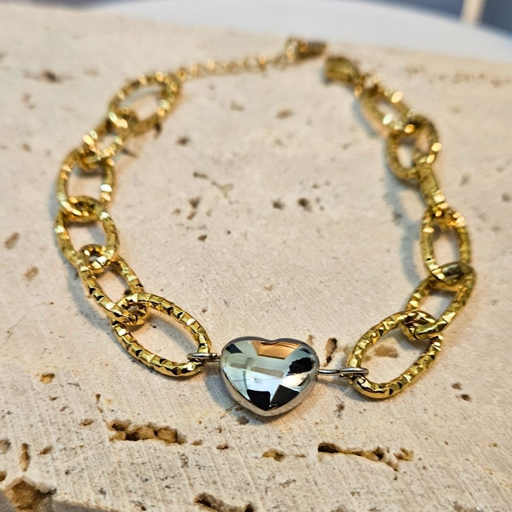 Βραχιόλι Αλυσίδα με Ασημί Καρδιά – Χρυσό