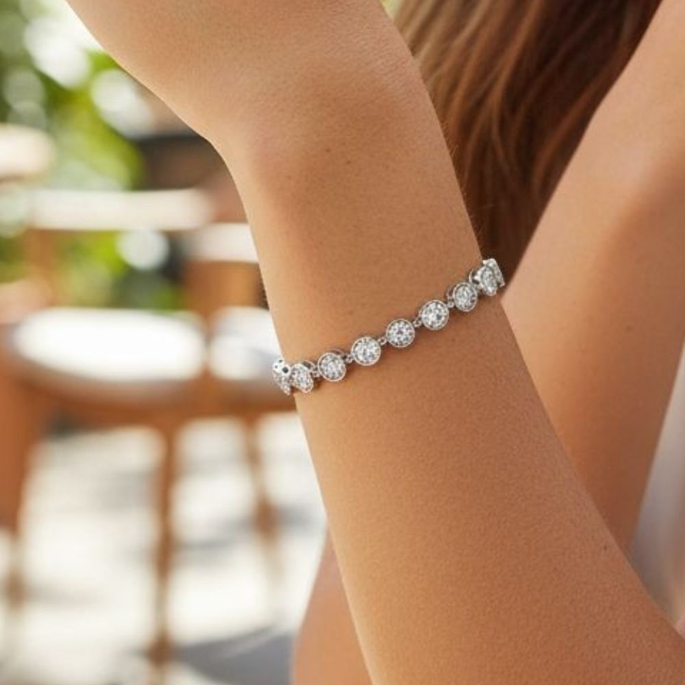 Βραχιόλι Αλυσίδα με Στρόγγυλα Πετράδια – Ασημί