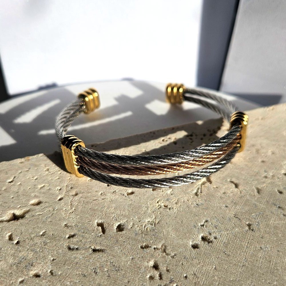 Βραχιόλι Χειροπέδα 3πλη Ενιαία – Ασημί, Χρυσό, Bronze