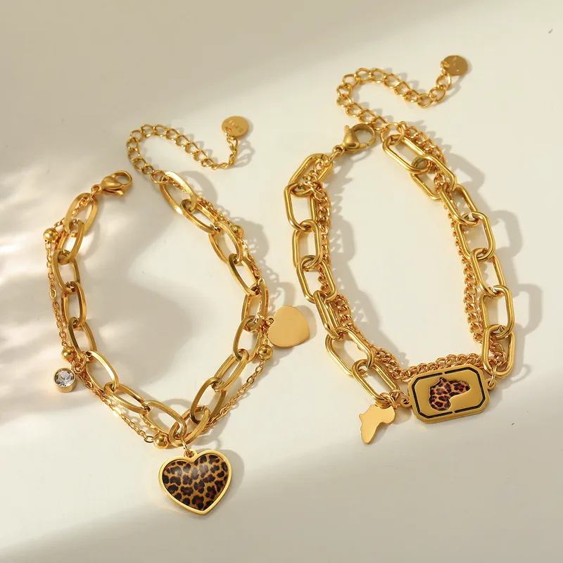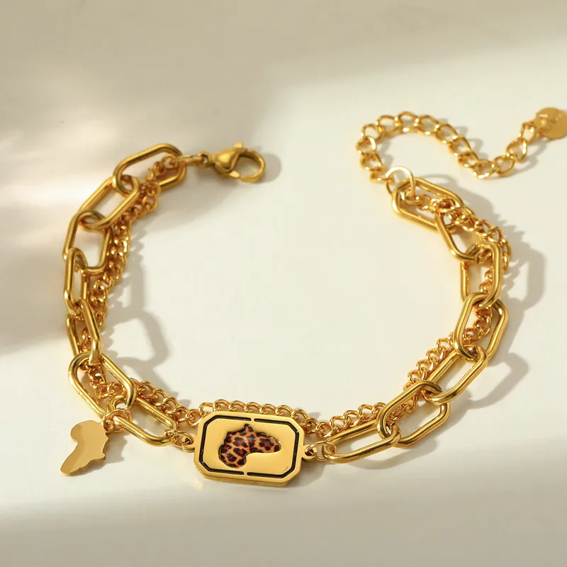 Βραχιόλι Διπλή Αλυσίδα Africa Λεοπάρ – Χρυσό