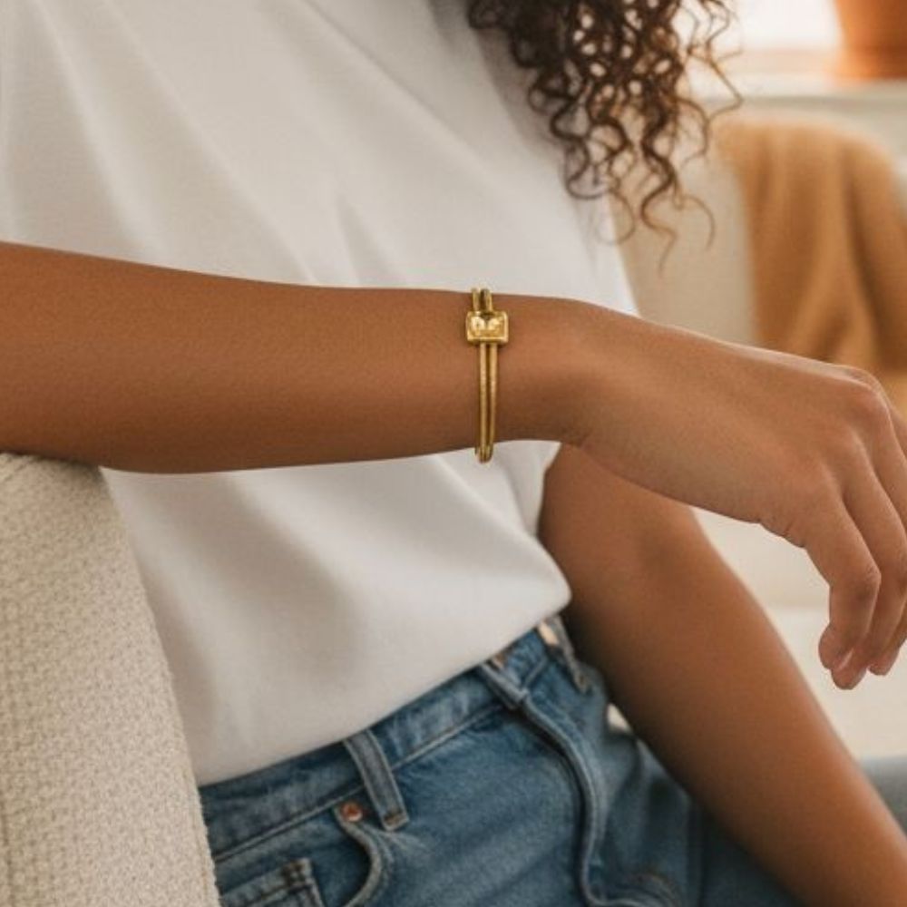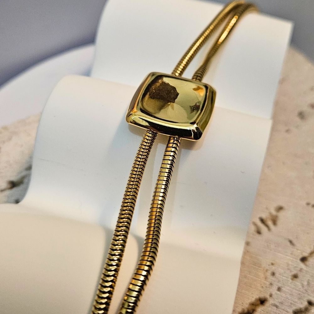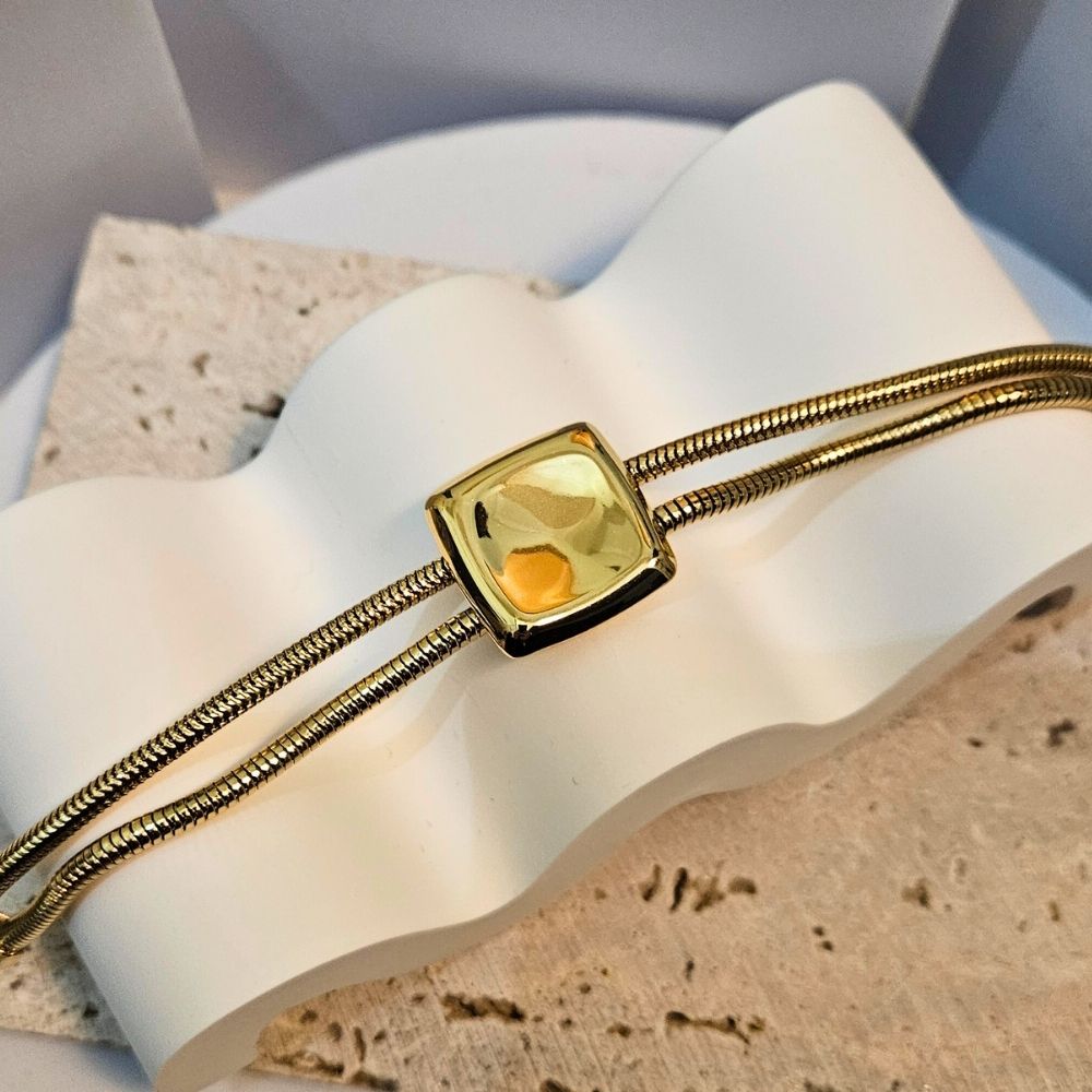 Βραχιόλι Διπλή Αλυσίδα με Τετράγωνη Λεπτομέρεια – Χρυσό