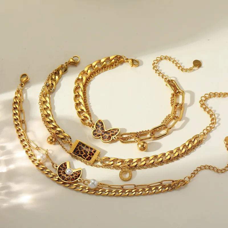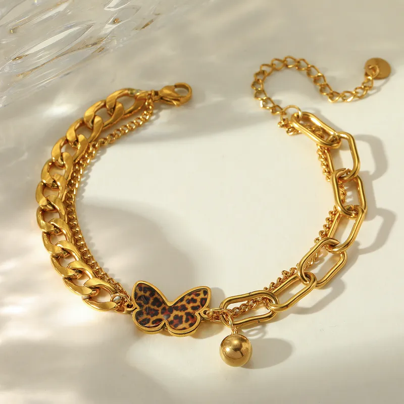 Βραχιόλι Ιδιαίτερη Αλυσίδα Butterfly Λεοπάρ – Χρυσό