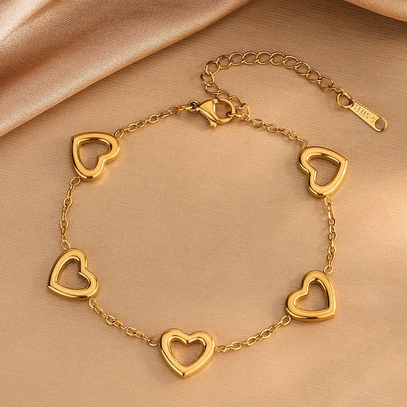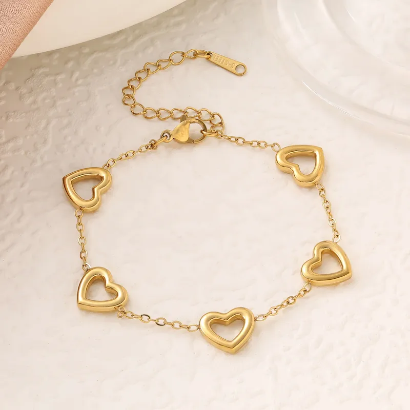Βραχιόλι Λεπτή Αλυσίδα Καρδούλες – Χρυσό