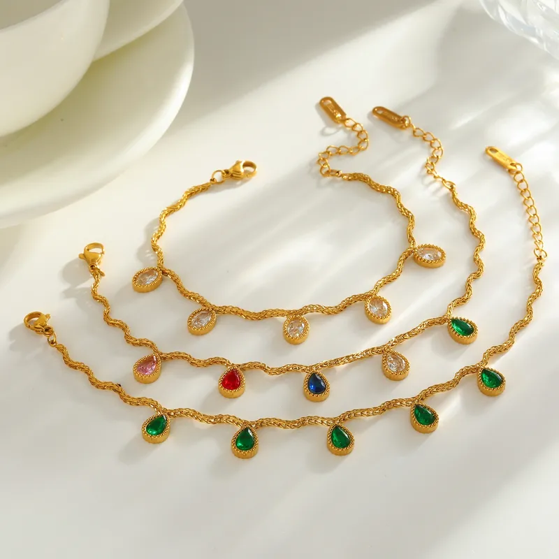 Βραχιόλι Λεπτή Αλυσίδα Sparkly Drops Πολύχρωμο - Χρυσό