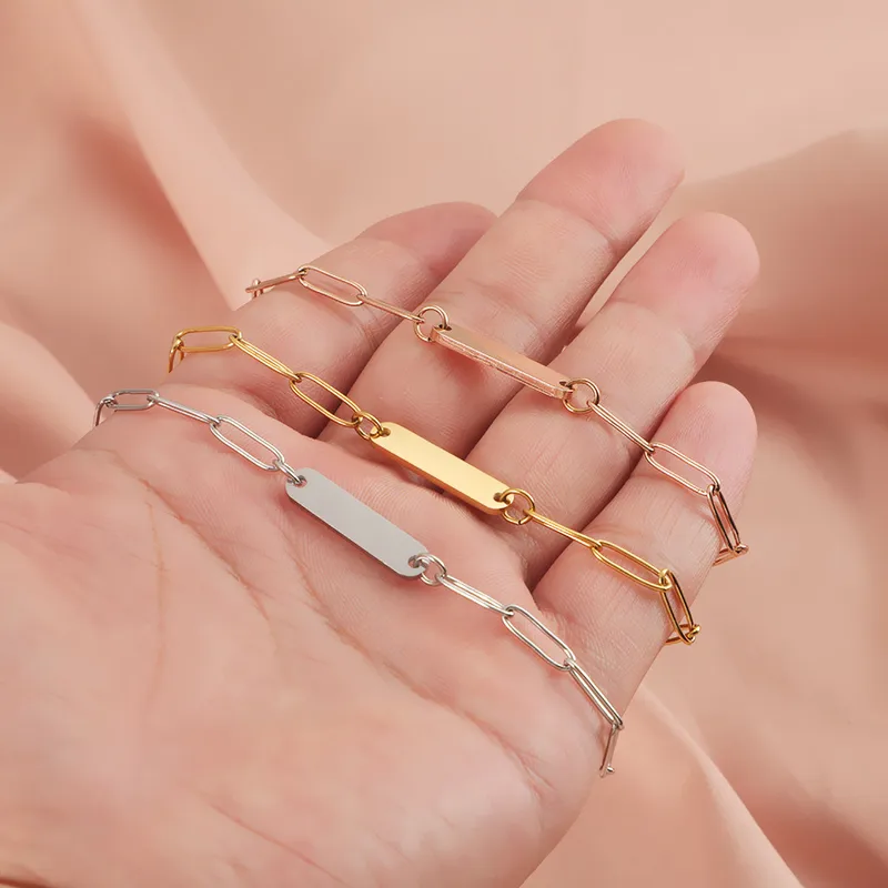 Βραχιόλι με Δυνατότητα Χάραξης Αλυσίδα Οβάλ Πλακέτα – Ασημί