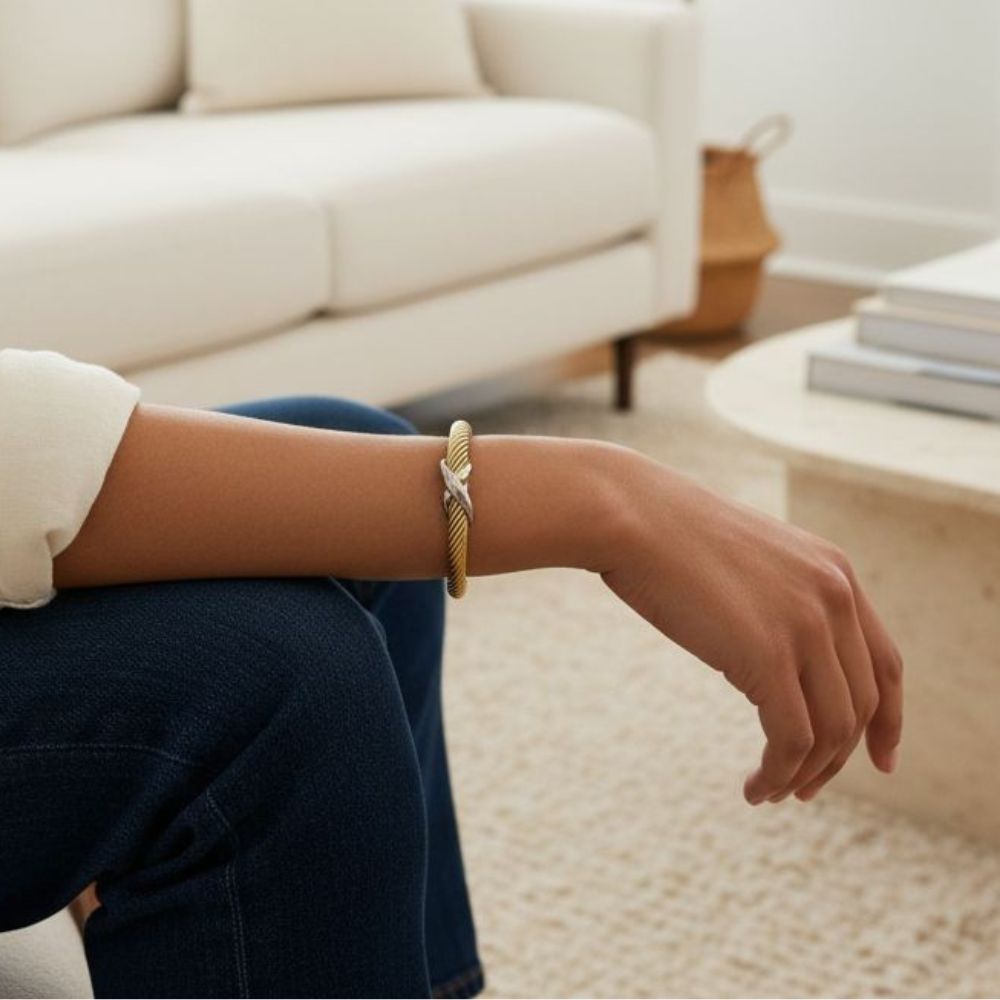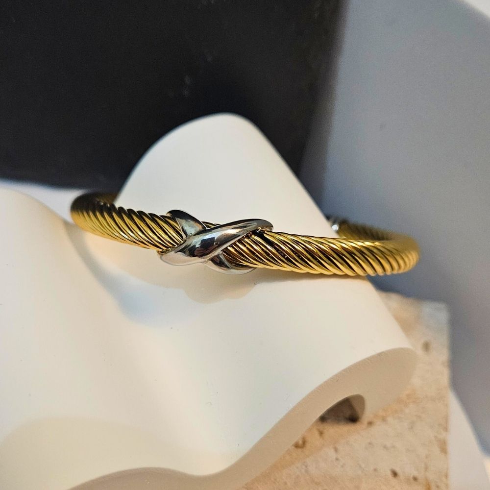 Βραχιόλι Open με Ασημί X Cross Λεπτομέρεια – Χρυσό