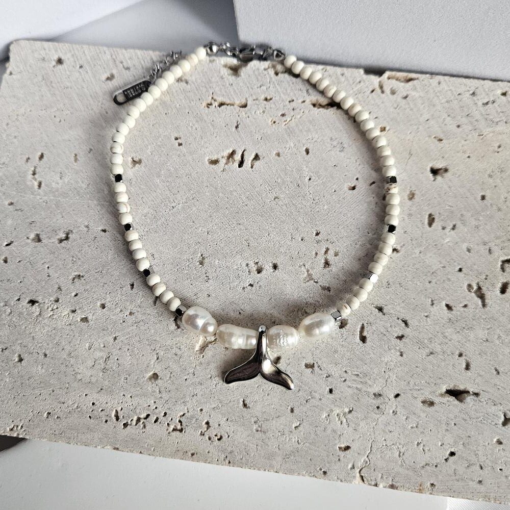 Βραχιόλι Ποδιού Με Λευκές Χάντρες και Ουρά Δελφινιού