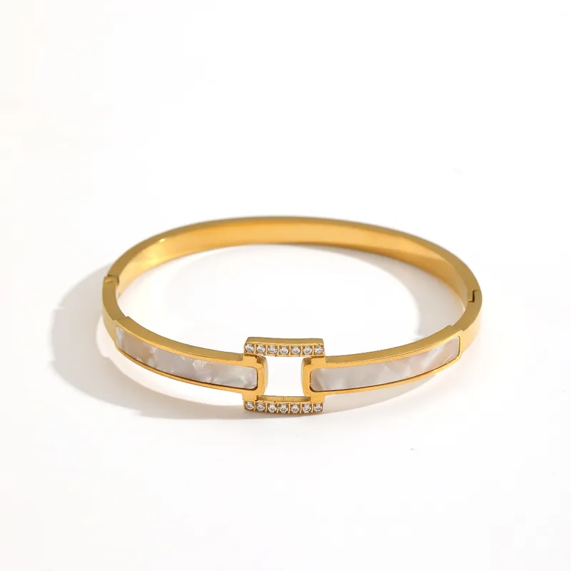 Βραχιόλι Σταθερό Chic Belt με Λευκή Πέτρα και Στρας – Χρυσό
