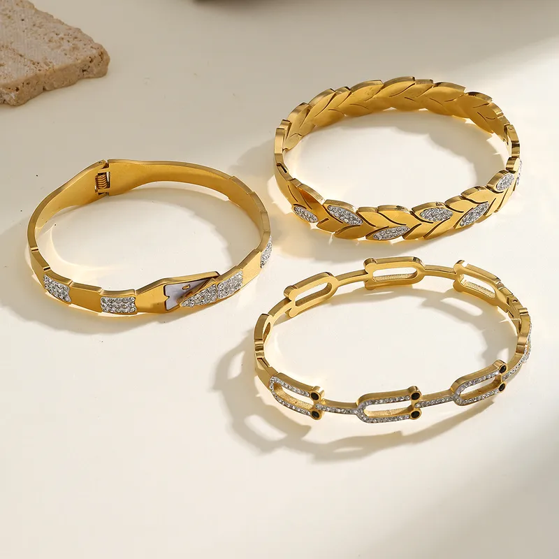 Βραχιόλι Σταθερό Leaf με Στρας – Χρυσό