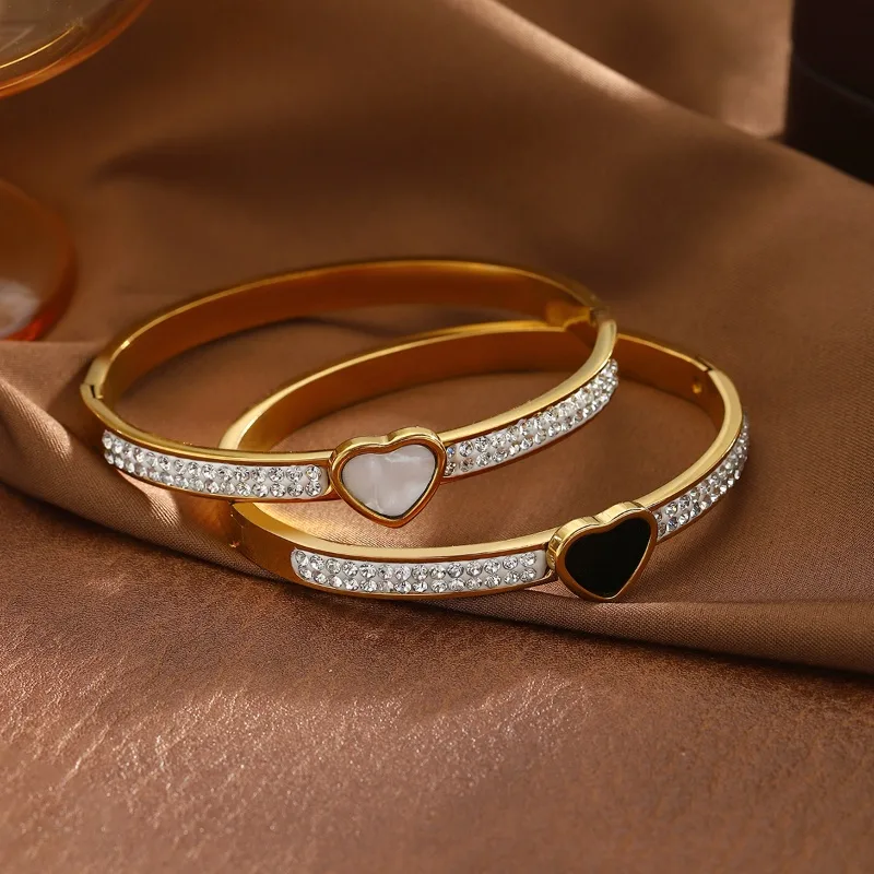 Βραχιόλι Σταθερό Μαύρη Καρδούλα και Στρας – Χρυσό