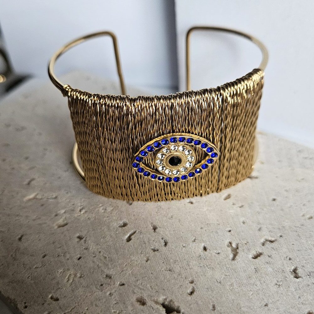 Βραχιόλι Σταθερό με Μπλε Στρας Ματάκι – Χρυσό