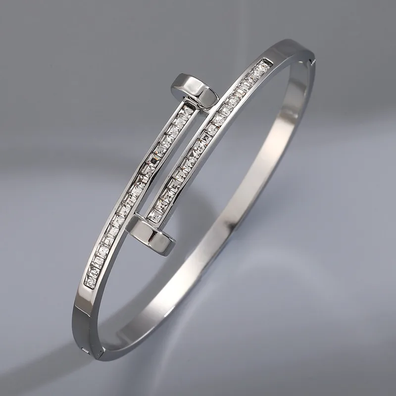 Βραχιόλι Σταθερό Open Screw με Στρας – Ασημί