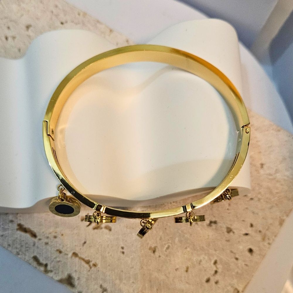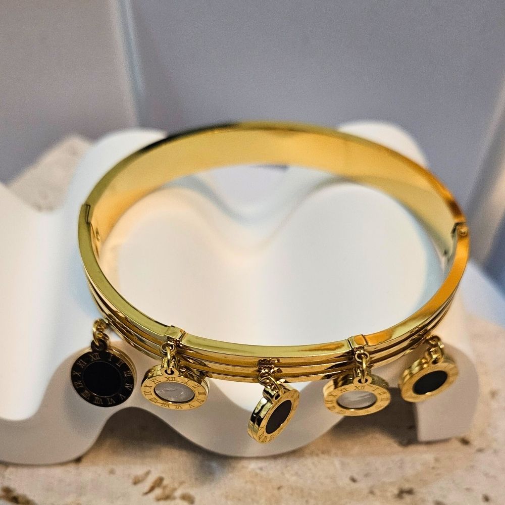 Βραχιόλι Σταθερό Τριπλό με Κρεμαστούς Δίσκους – Χρυσό