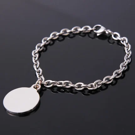 Βραχιόλι με Δυνατότητα Χάραξης Κυκλική Πλακέτα – Ασημί